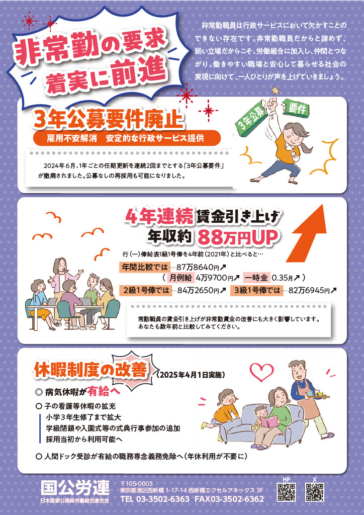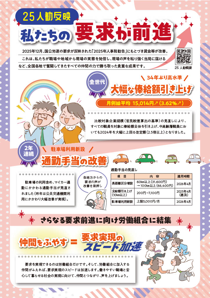 みんなの力で実現しました!2025秋闘チラシ 2026 2/09 2025秋闘チラシPDFデータのダウンロード データ・資料 シェアお願いします! 衆議院解散選挙用バナー 関連記事 衆議院解散選挙用バナー 2026年1月28日 【2025年人事院勧告】関連資料 2025年8月7日 新しいパンフレット『対話をすすめる5つのレシピ』を発行しました 2025年2月21日 パンフレット『国民のいのちとくらしをまもる行政の拡充を』を発行しました 2025年1月31日 カテゴリー お知らせ とりくみ データ・資料 人事院勧告 国公労新聞 私たちの主張 タグ国公女性協 国公青年フォーラム